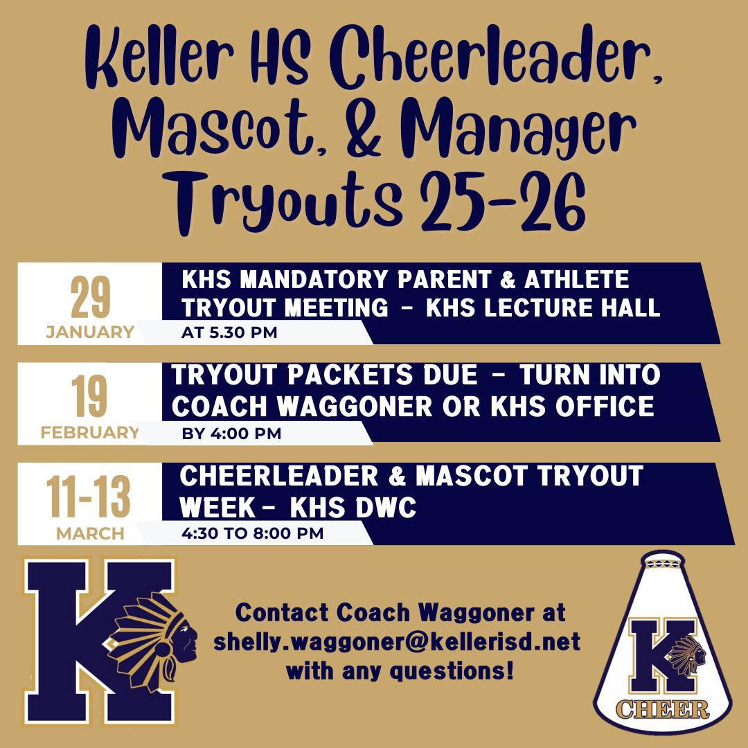 PLEASE NOTE... It is MANDATORY to attend the KHS tryout meeting on January 29th to be eligible to try out as a Cheerleader, Mascot, or Manager in the KHS Cheer program.
